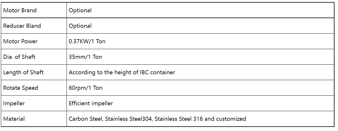 เครื่องกวนภาชนะ IBC ใช้สำหรับการทำให้เป็นเนื้อเดียวกัน การแขวนลอย และการละลายของเหลวในภาชนะ IBCKEHENG MIXING มีเครื่องกวนไฟฟ้าหลายแบบที่เหมาะกับการใช้งานที่แตกต่างกัน