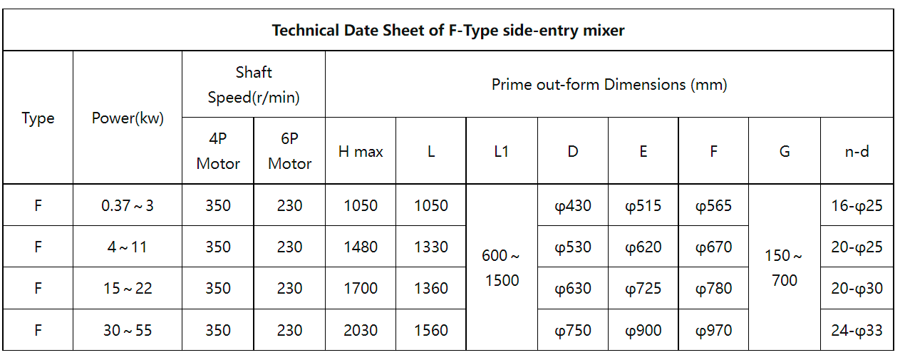 เครื่องกวนชนิด F-Type Side-entry สามารถติดตั้งได้ในถังปิโตรเลียม ถังหล่อลื่น ถังน้ำมันเชื้อเพลิง ถังพาราฟิน ถังแอสฟัลต์ (สำหรับแอสฟัลต์ยางหนัก น้ำมันดินปิโตรเลียมพื้นฐาน แอสฟัลต์เกรด A) และถังเก็บบางส่วนสำหรับสารเติมแต่งและตัวกลางอื่น ๆ ที่ จำเป็นต้องคน
